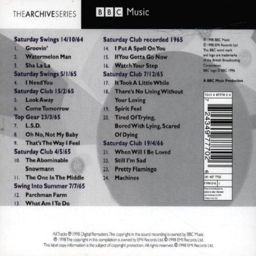 Manfred Mann were an English beat, rhythm and blues and pop band (with a strong jazz foundation) of the 1960s, named after their keyboardist, Manfred Mann, who later led the successful 1970s group Manfred Mann's Earth Band. Manfred Mann were chart regulars in the 1960s, and the first south-of-England-based group to top the US Billboard Hot 100 during the British invasion. Three of the band's most successful singles, "Do Wah Diddy Diddy", "Pretty Flamingo" and "Mighty Quinn", topped the UK Singles Chart... (wikipedia)