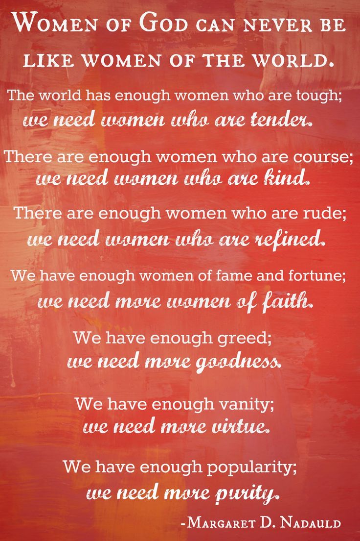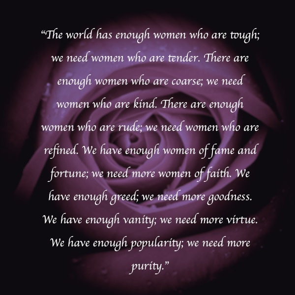 It is a holy blessing to be born with the exquisite qualities of a daughter of God. Women of God, both old and young, are spiritual and sensitive, tender and gentle. They have a kind, nurturing nature. This is your inheritance. Never belittle the gifts God has given to you. Develop the divinity that is within you.