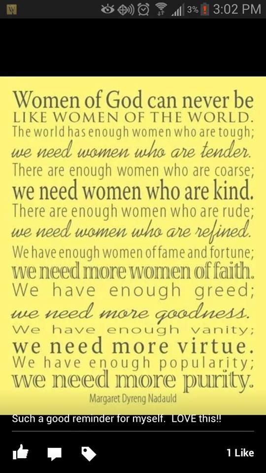 A woman of faith is fearless. There is no ambiguity, no uncertain trump in her life. She can live a principled life because she studies the doctrine and teachings of a perfect teacher, the Master. She is a noble example to all who know her.