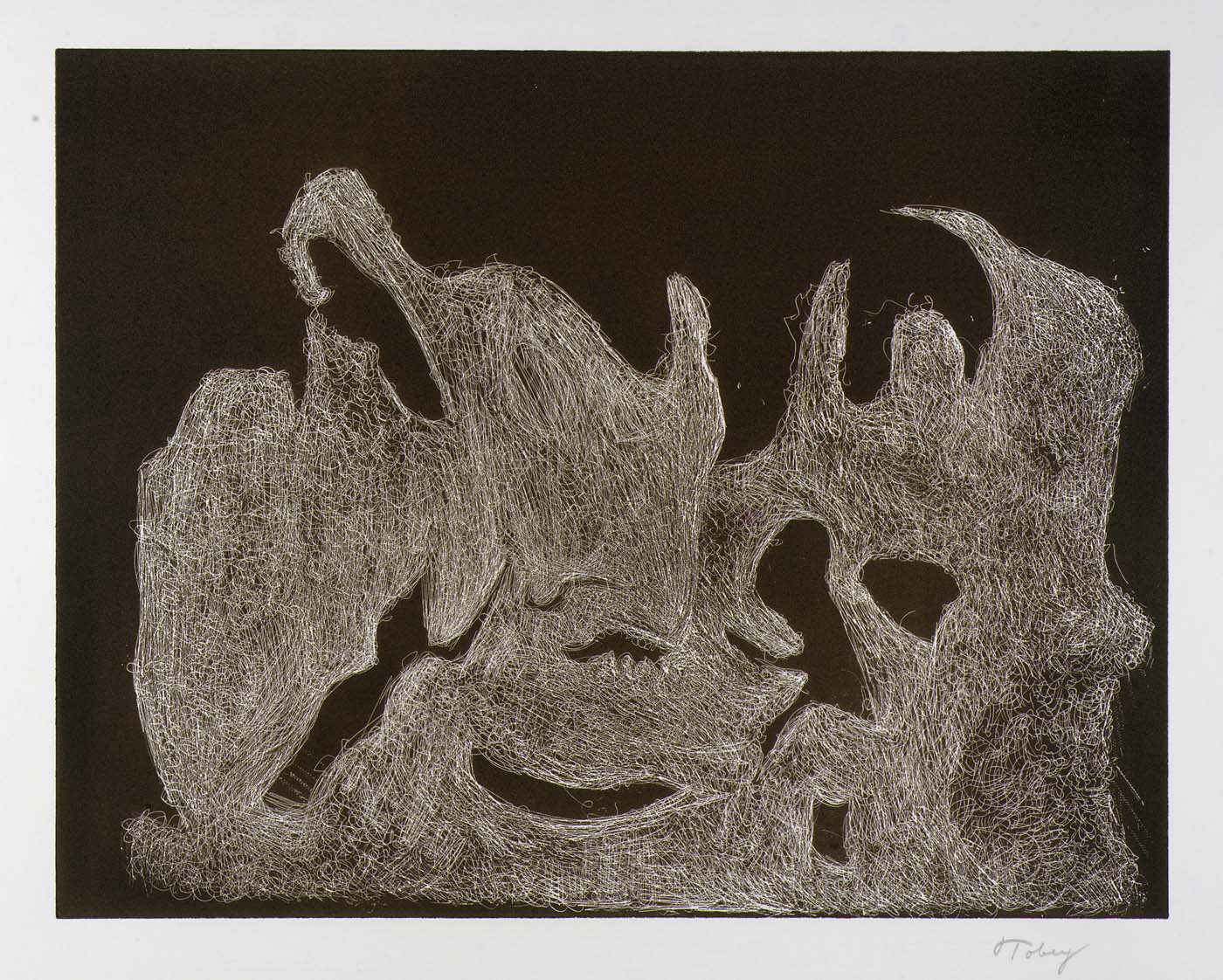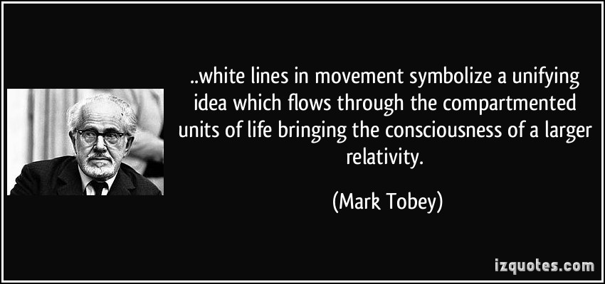 Mark George Tobey was an American painter. His densely structured compositions, inspired by Asian calligraphy, resemble Abstract expressionism, although the motives for his compositions differ philosophically from most Abstract Expressionist painters. His work was widely recognized throughout the United States and Europe. Along with Guy Anderson, Kenneth Callahan, Morris Graves, and William Cumming, Tobey was a founder of the Northwest School. Senior in age and experience, he had a strong influence on the others; friend and mentor, Tobey shared their interest in philosophy and Eastern religions. Similar to others of the Northwest School, Tobey was mostly self-taught after early studies at the Art Institute of Chicago... (wikipedia)