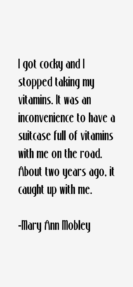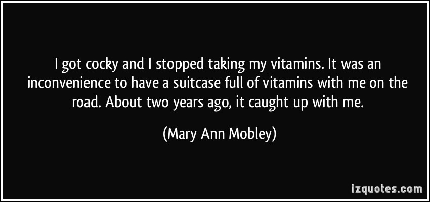 I got cocky and I stopped taking my vitamins. It was an inconvenience to have a suitcase full of vitamins with me on the road. About two years ago, it caught up with me.