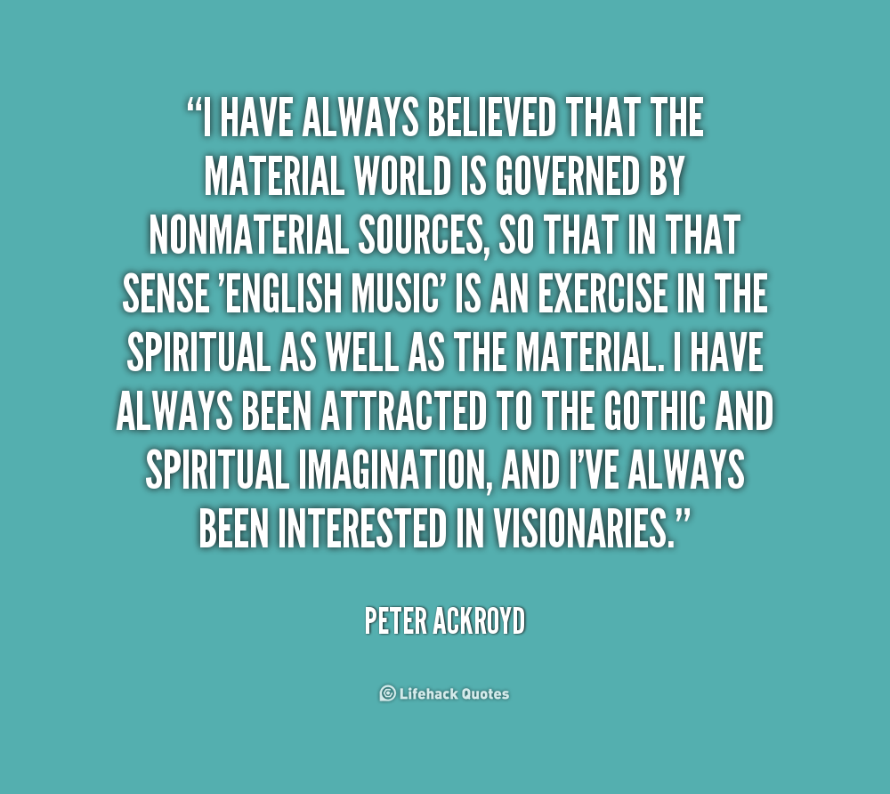 I have always believed that the material world is governed by nonmaterial sources, so that in that sense 'English Music' is an exercise in the spiritual as well as the material. I have always been attracted to the Gothic and spiritual imagination, and I've always been interested in visionaries.