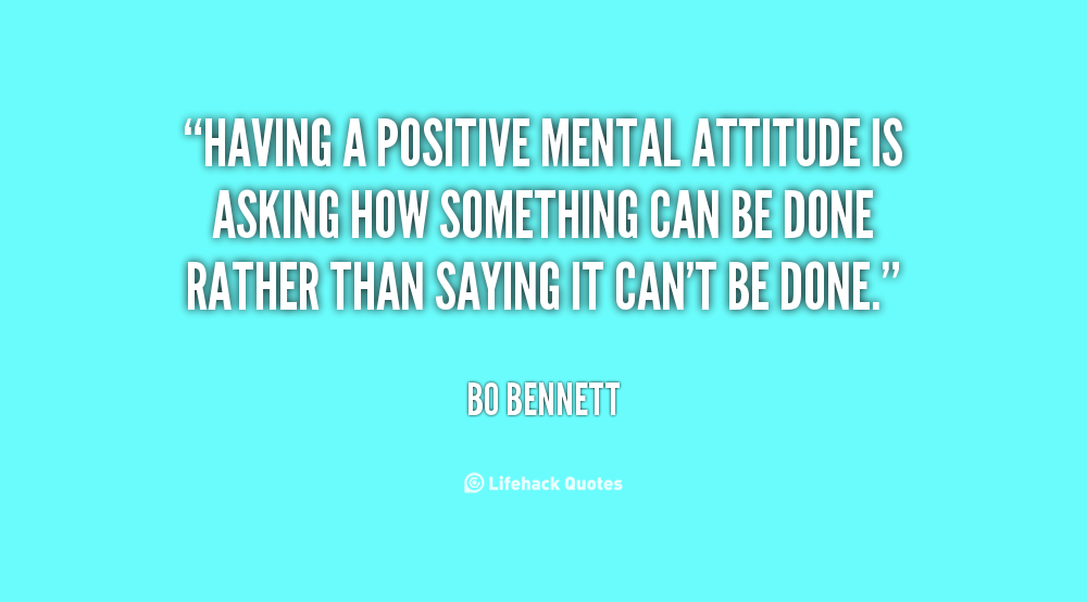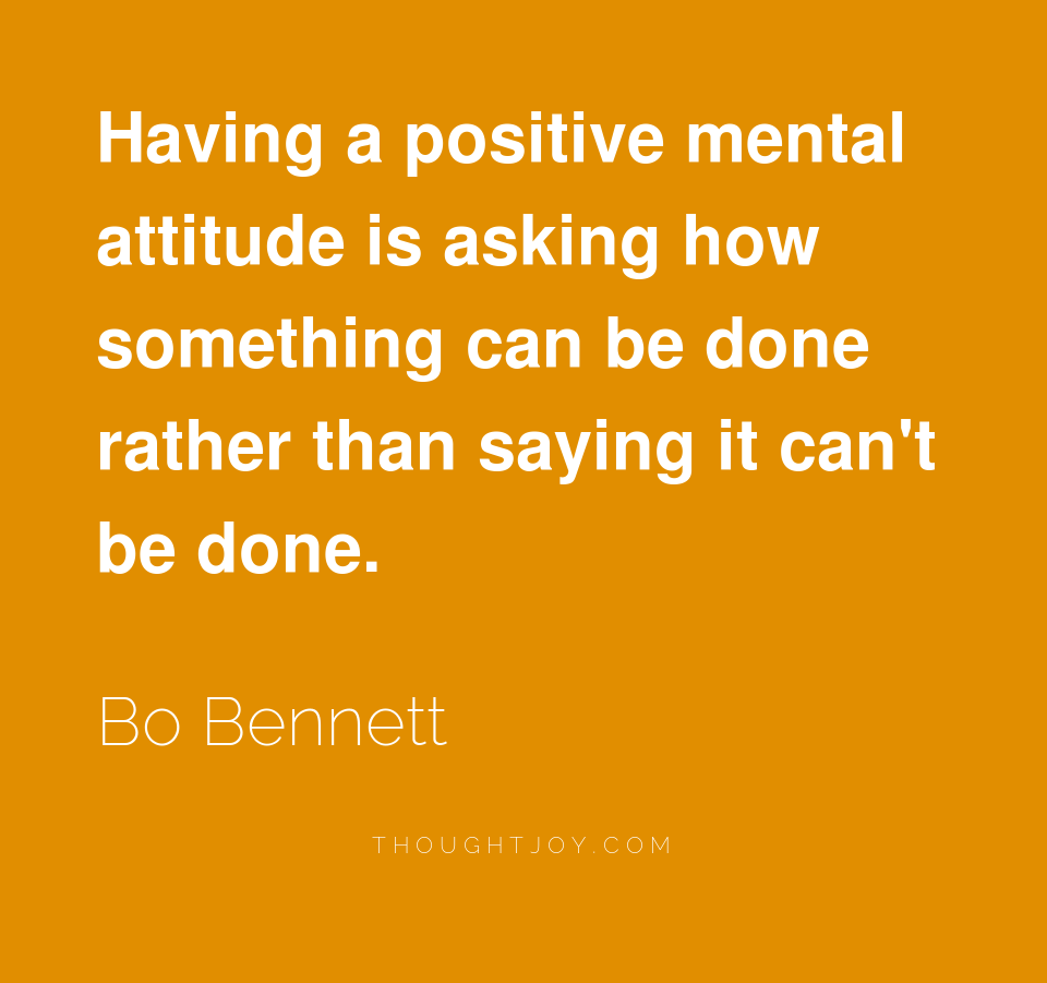 Having a positive mental attitude is asking how something can be done rather than saying it can't be done.