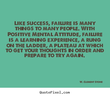 Like success, failure is many things to many people. With Positive Mental Attitude, failure is a learning experience, a rung on the ladder, a plateau at which to get your thoughts in order and prepare to try again.