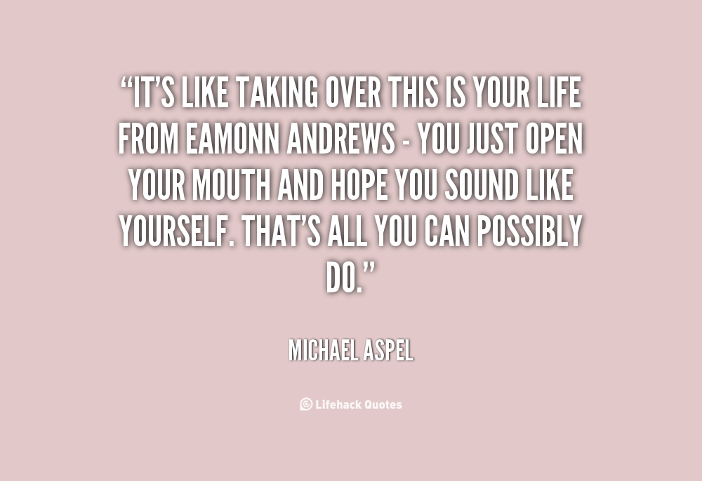 It's like taking over This Is Your Life from Eamonn Andrews - you just open your mouth and hope you sound like yourself. That's all you can possibly do.