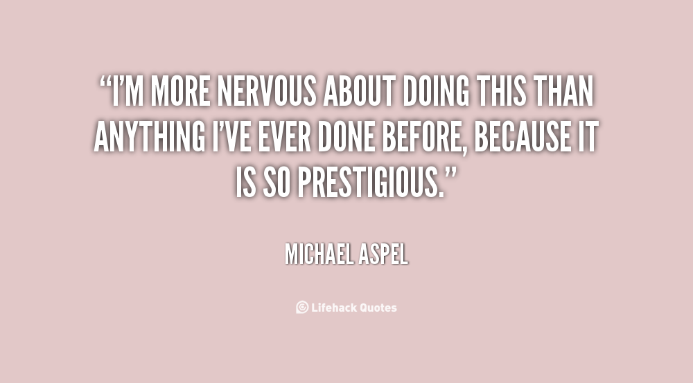 I'm more nervous about doing this than anything I've ever done before, because it is so prestigious.