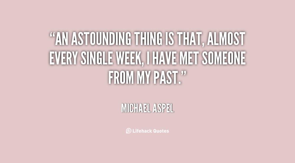 An astounding thing is that, almost every single week, I have met someone from my past.