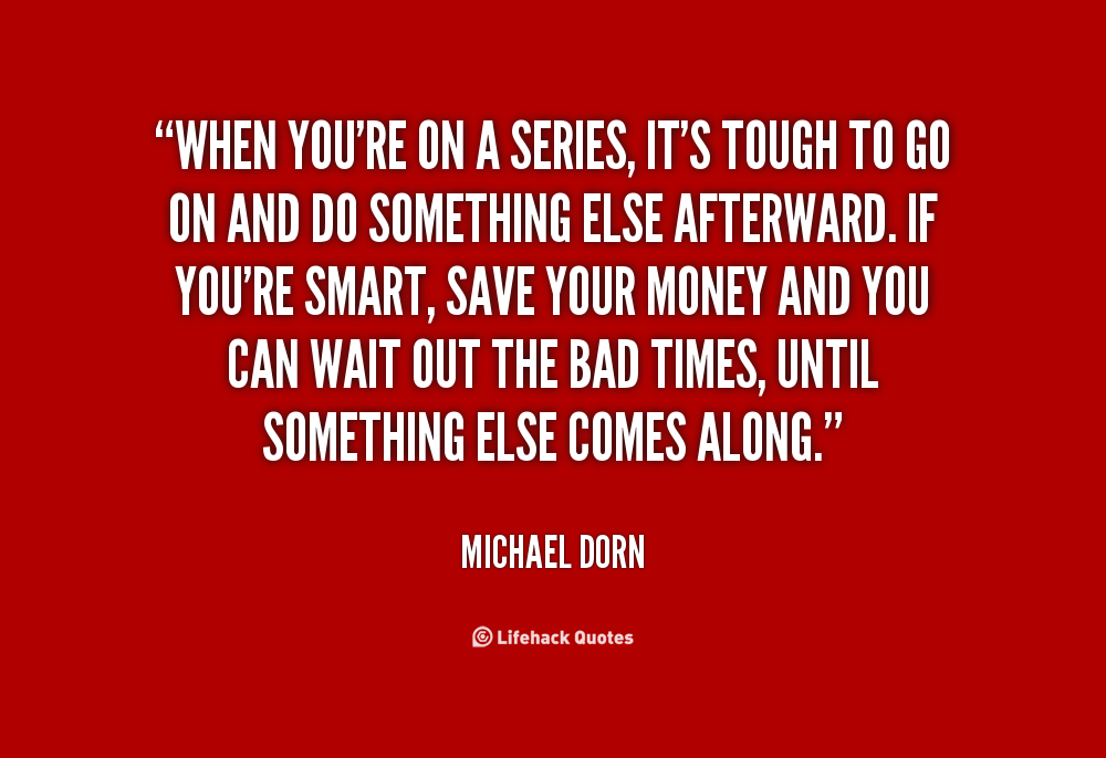 When you're on a series, it's tough to go on and do something else afterward. If you're smart, save your money and you can wait out the bad times, until something else comes along.