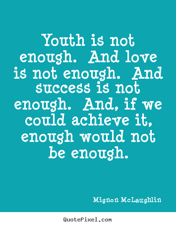 Mignon McLaughlin was an American journalist and author. In the 1950s, she began publishing aphorisms that were later collected in three books, entitled, The Neurotic’s Notebook, The Second Neurotic’s Notebook and The Complete Neurotic’s Notebook. She is known for a number of quotes, among them:.. (wikipedia)