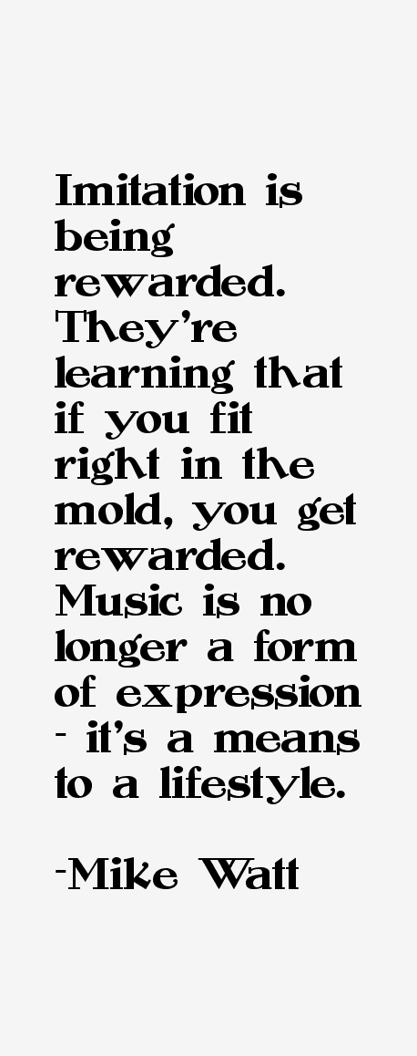 Imitation is being rewarded. They're learning that if you fit right in the mold, you get rewarded. Music is no longer a form of expression - it's a means to a lifestyle.