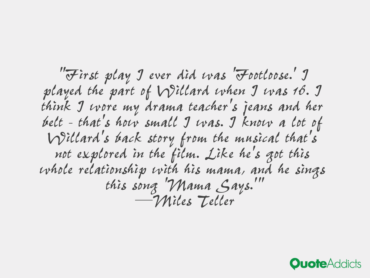 Miles Alexander Teller is an American actor and musician. He made his feature film debut in Rabbit Hole. Since then, he has acted in Footloose, Project X, and That Awkward Moment... (wikipedia)