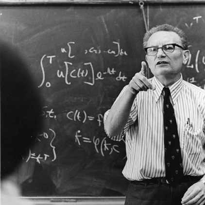 Milton Friedman was an American economist who received the 1976 Nobel Memorial Prize in Economic Sciences for his research on consumption analysis, monetary history and theory and the complexity of stabilization policy. With George Stigler and others, Friedman was among the intellectual leaders of the second generation of Chicago price theory, a methodological movement at the University of Chicago's Department of Economics, Law School, and Graduate School of Business from the 1940s onward. Several students and young professors that were recruited or mentored by Friedman at Chicago went on to become leading economists; they include Gary Becker, Robert Fogel, Ronald Coase, and Robert Lucas, Jr.... (wikipedia)