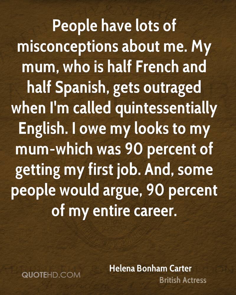People have lots of misconceptions about me. My mum, who is half French and half Spanish, gets outraged when I'm called quintessentially English. I owe my looks to my mum-which was 90 percent of getting my first job. And, some people would argue, 90 percent of my entire career.