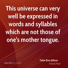 This universe can very well be expressed in words and syllables which are not those of one's mother tongue.