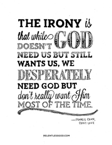 Francis Chan is a preacher in America. He is the former teaching pastor of Cornerstone Community Church in Simi Valley, CA, a church he and his wife started in 1994. He is also the Founder and Chancellor of Eternity Bible College and author of the best-selling books, Crazy Love: Overwhelmed by a Relentless God, which came out in 2009. and most recently, You and Me Forever: Marriage In Light of Eternity, which came out in 2014. He released his second book Forgotten God: Reversing Our Tragic Neglect of the Holy Spirit in August 2009. His other works include Erasing Hell in 2011, Multiply: Disciples Making Disciples in 2012, and the Basic Series by Francis Chan, a DVD series started in 2010. He also sits on the board of directors of Children’s Hunger Fund and World Impact... (wikipedia)