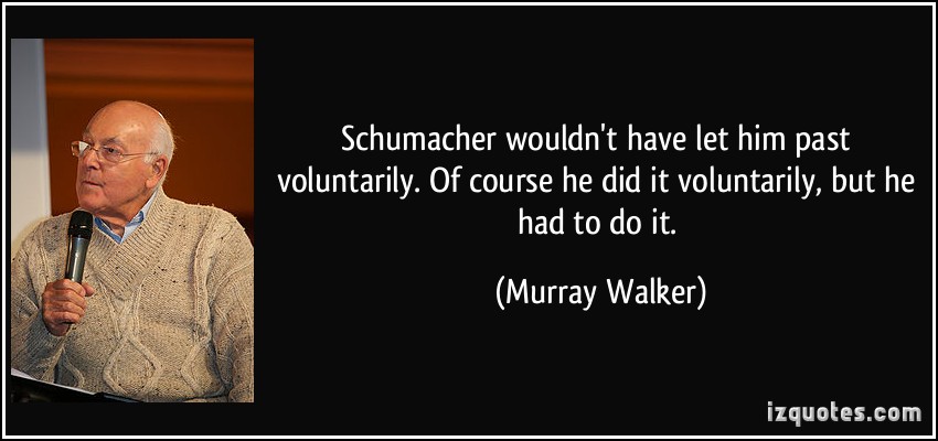 Graeme Murray Walker, OBE, known as Murray Walker, is a semi-retired English Formula One motorsport commentator and journalist. For most of his career he worked for the BBC, but when it lost the contract for Formula One coverage to ITV, he continued commentating after the change of broadcaster... (wikipedia)