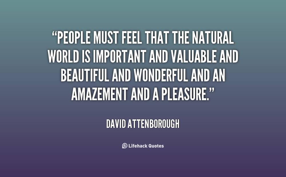 People must feel that the natural world is important and valuable and beautiful and wonderful and an amazement and a pleasure.