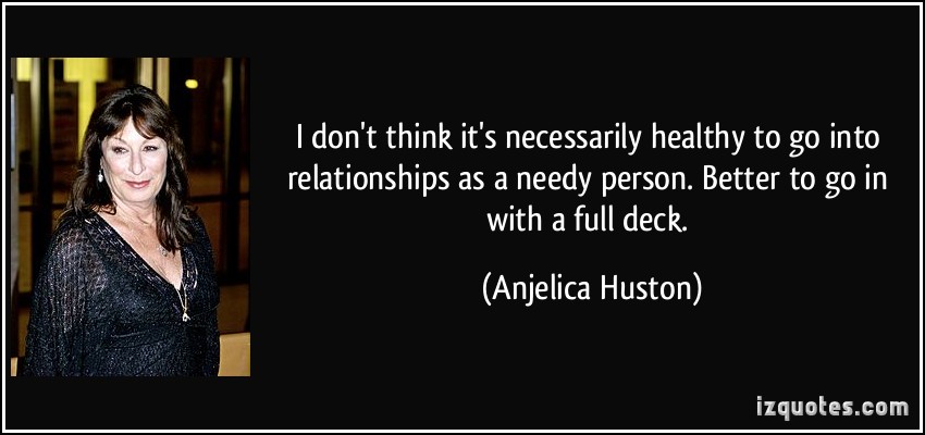 I don't think it's necessarily healthy to go into relationships as a needy person. Better to go in with a full deck.