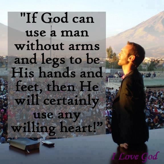 Nicholas James Vujicic is an Australian Christian evangelist and motivational speaker born with Phocomelia, a rare disorder characterized by the absence of all four limbs. As a child, he struggled mentally and emotionally as well as physically, but eventually came to terms with his disability and, at the age of seventeen, started his own non-profit organization, Life Without Limbs. Vujicic presents motivational speeches worldwide which focus on life with a disability, hope and finding meaning in life... (wikipedia)