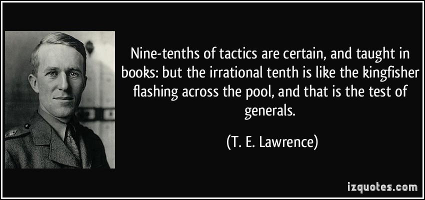 Nine-tenths of tactics are certain, and taught in books: but the irrational tenth is like the kingfisher flashing across the pool, and that is the test of generals.