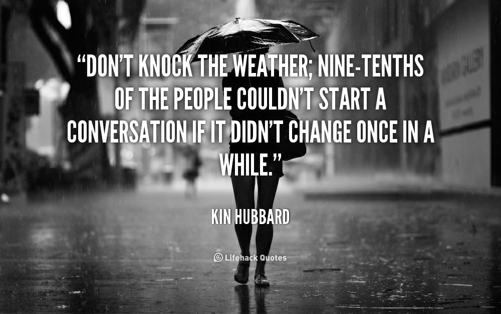 Don't knock the weather; nine-tenths of the people couldn't start a conversation if it didn't change once in a while.