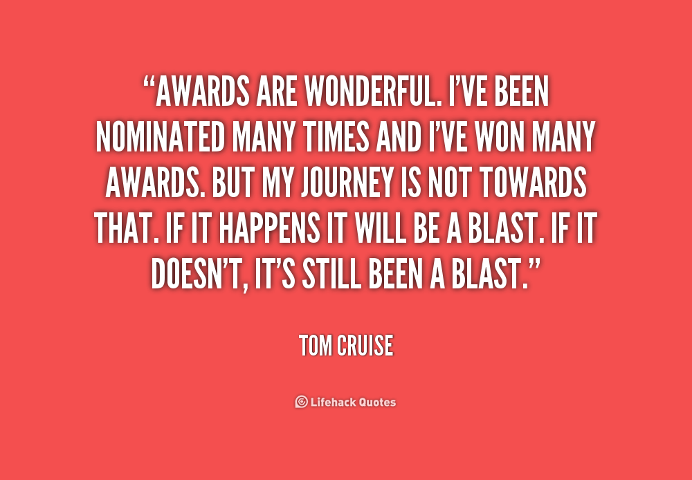 You know those award shows. The cliche is that it's an honor just to be nominated, but that happens to be true. Whoever wins it in the end, I don't know, sometimes it feels arbitrary. Sometimes it feels like it's deserving.