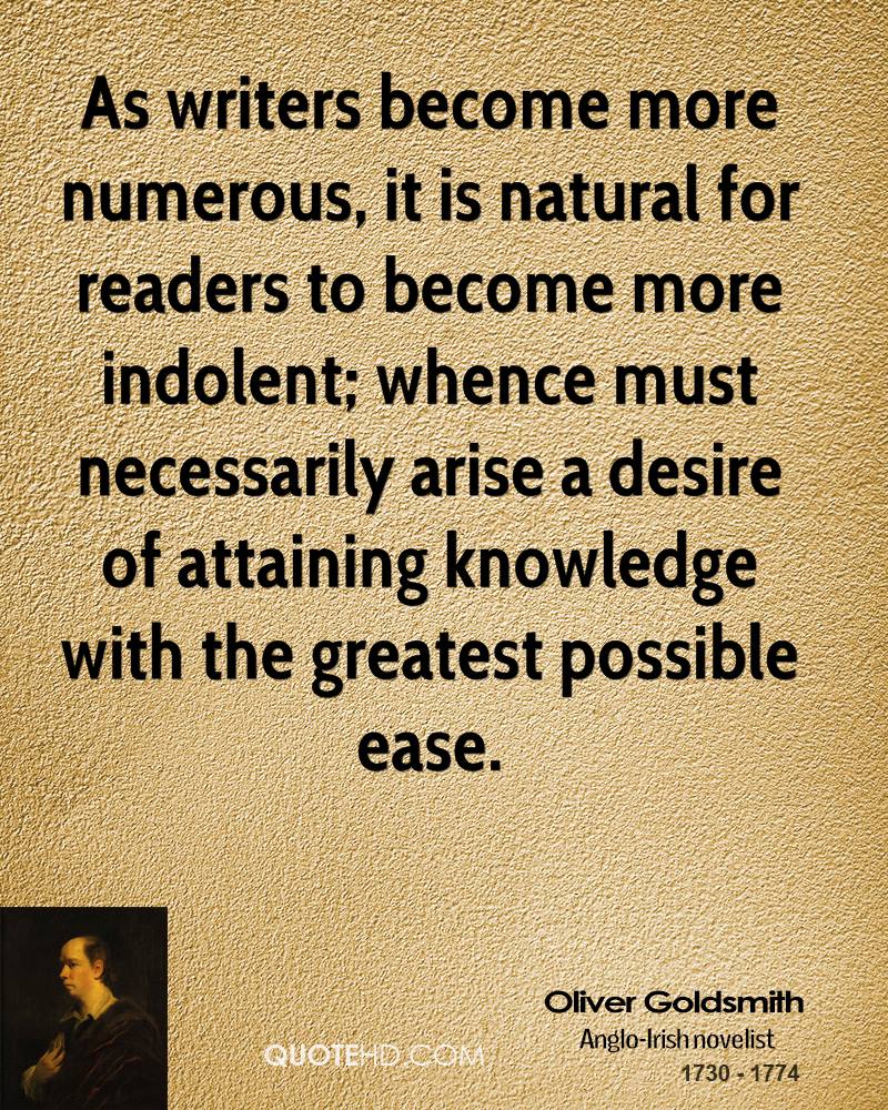 Oliver Goldsmith was an Anglo-Irish novelist, playwright and poet, who is best known for his novel The Vicar of Wakefield, his pastoral poem The Deserted Village, and his plays The Good-Natur'd Man and She Stoops to Conquer. He is thought to have written the classic children's tale The History of Little Goody Two-Shoes... (wikipedia)