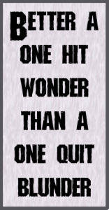 I'm not into one-hit wonders.