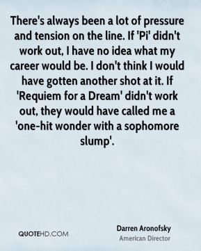 There's always been a lot of pressure and tension on the line. If 'Pi' didn't work out, I have no idea what my career would be. I don't think I would have gotten another shot at it. If 'Requiem for a Dream' didn't work out, they would have called me a 'one-hit wonder with a sophomore slump'.