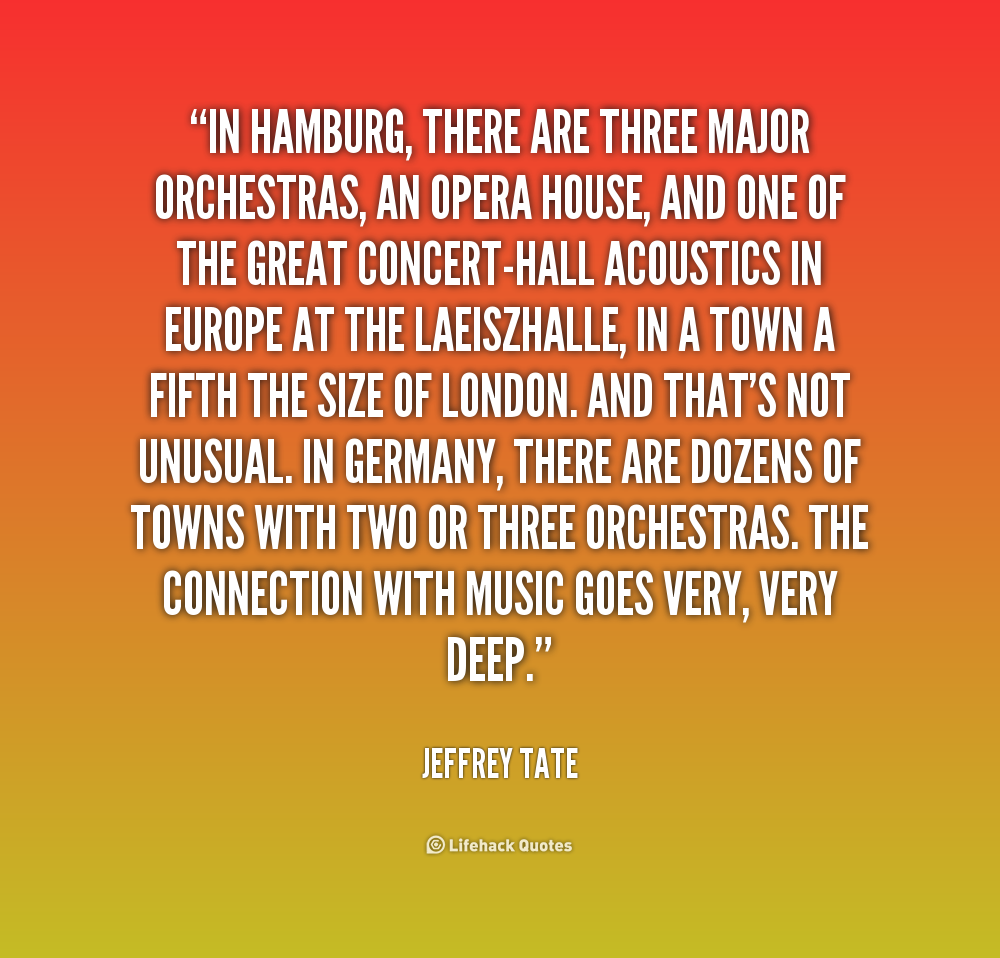 In Hamburg, there are three major orchestras, an opera house, and one of the great concert-hall acoustics in Europe at the Laeiszhalle, in a town a fifth the size of London. And that's not unusual. In Germany, there are dozens of towns with two or three orchestras. The connection with music goes very, very deep.
