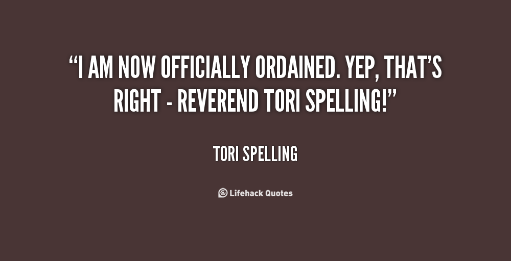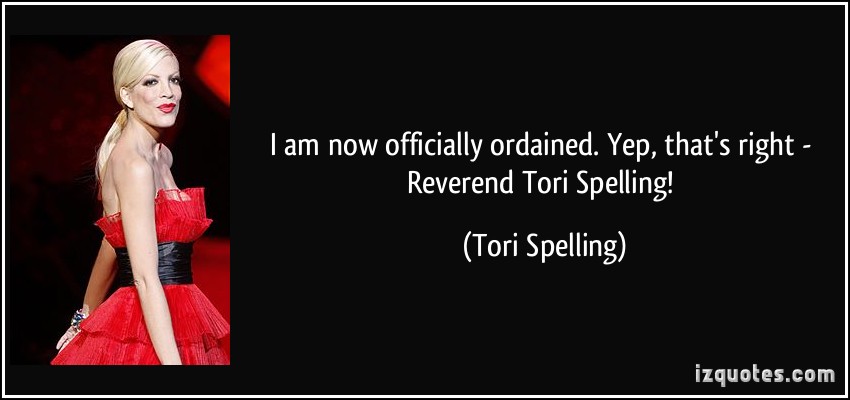 I am now officially ordained. Yep, that's right - Reverend Tori Spelling!