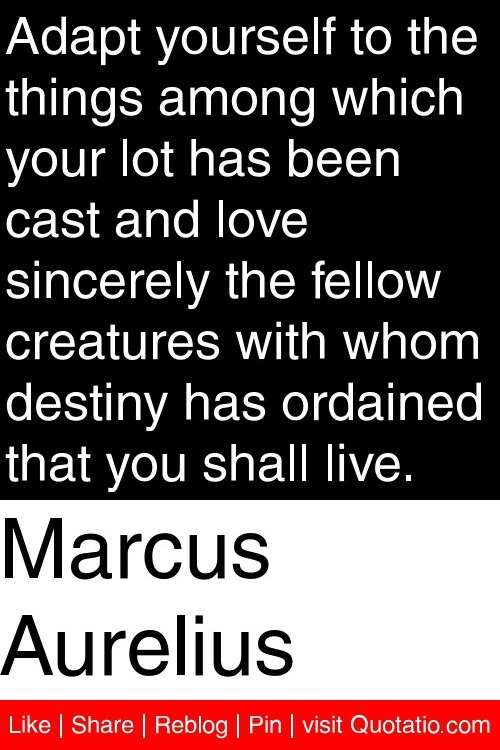 Adapt yourself to the things among which your lot has been cast and love sincerely the fellow creatures with whom destiny has ordained that you shall live.