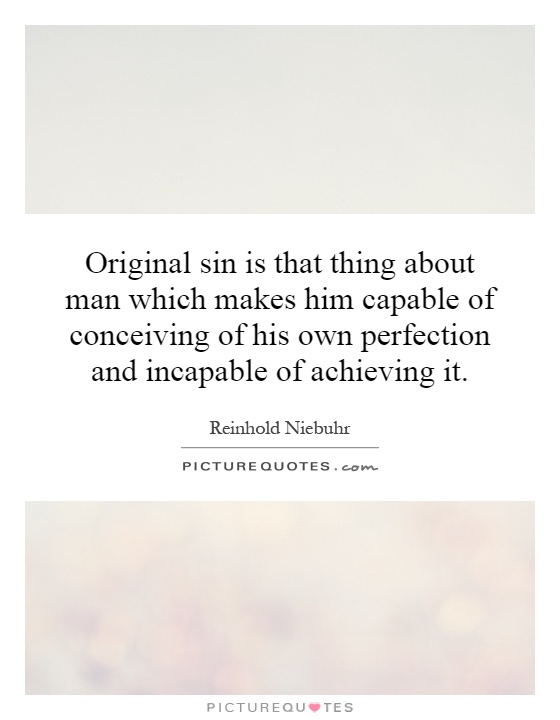 Original sin is that thing about man which makes him capable of conceiving of his own perfection and incapable of achieving it.