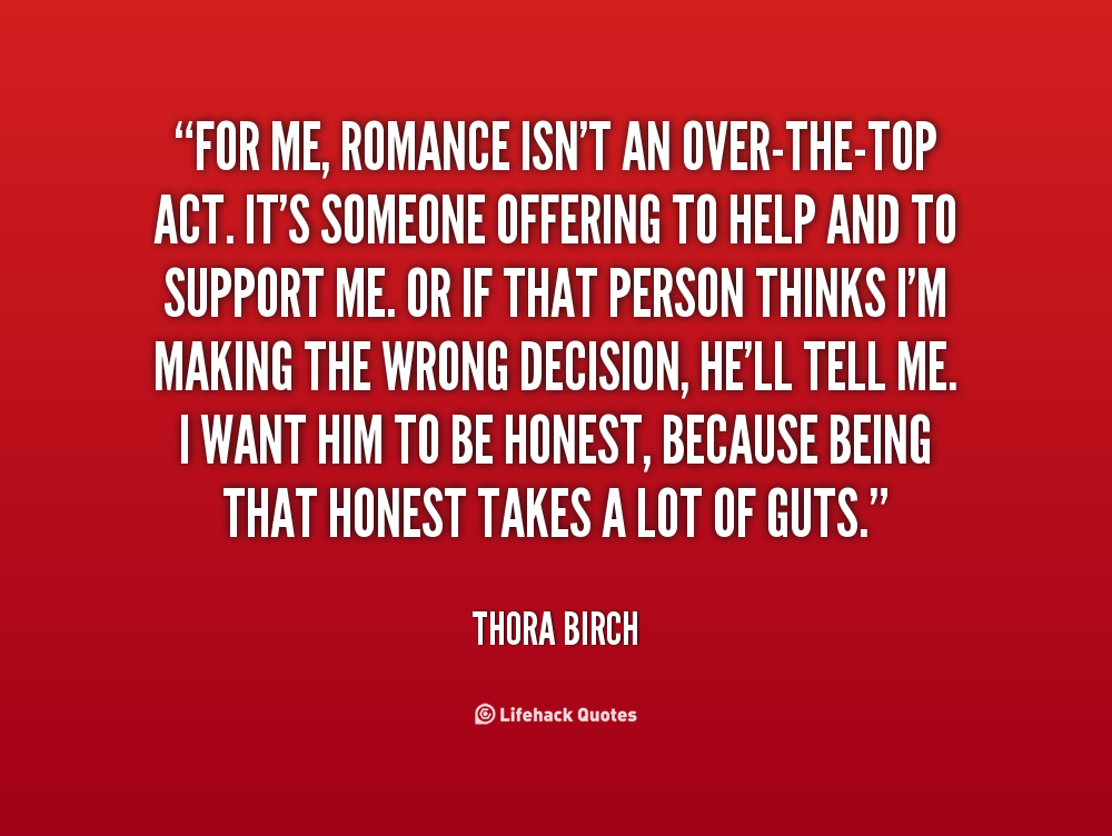 For me, romance isn't an over-the-top act. It's someone offering to help and to support me. Or if that person thinks I'm making the wrong decision, he'll tell me. I want him to be honest, because being that honest takes a lot of guts.
