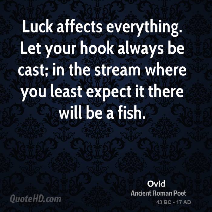 Luck affects everything. Let your hook always be cast; in the stream where you least expect it there will be a fish.