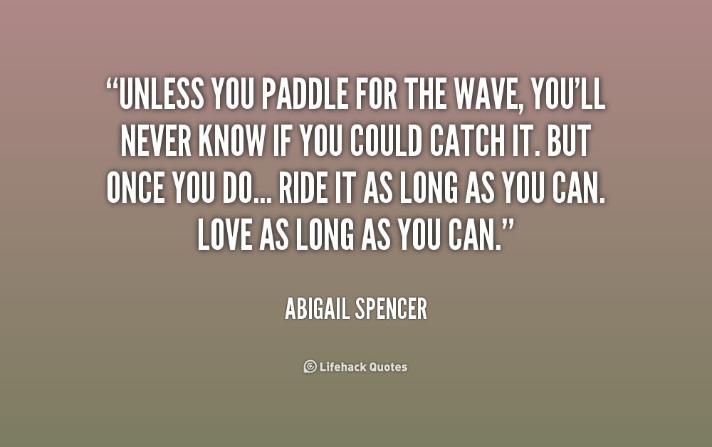 Unless you paddle for the wave, you'll never know if you could catch it. But once you do... Ride it as long as you can. Love as long as you can.