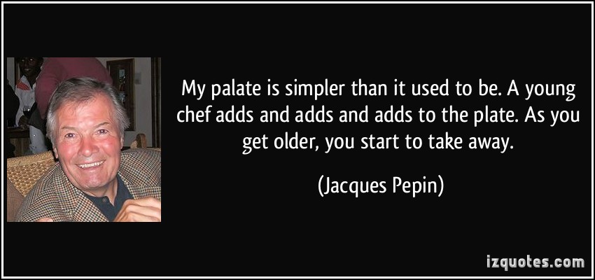 My palate is simpler than it used to be. A young chef adds and adds and adds to the plate. As you get older, you start to take away.