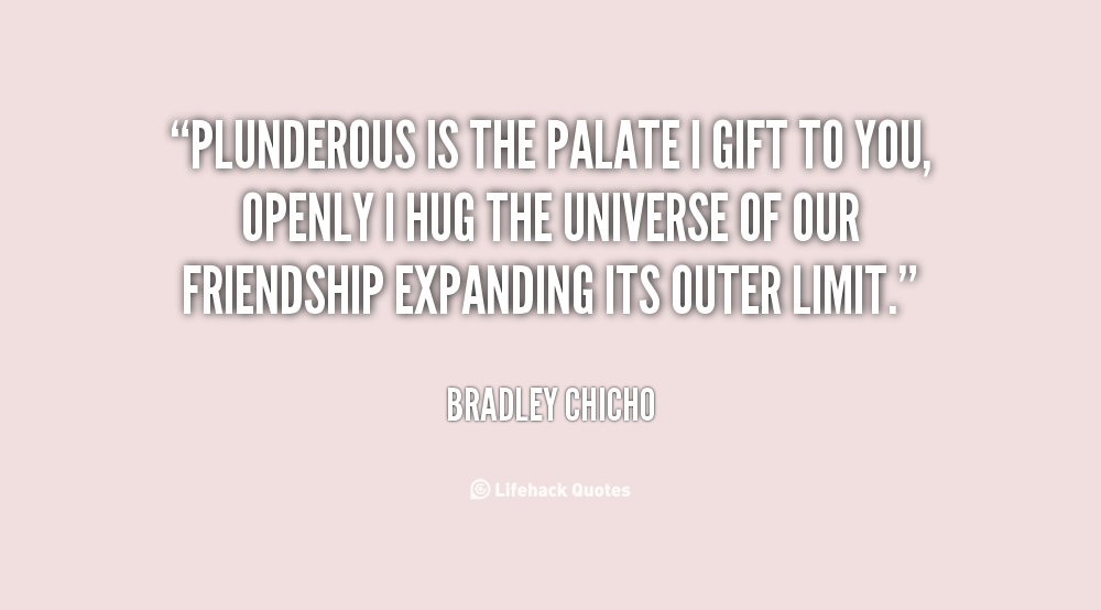 Plunderous is the palate I gift to you, openly I hug the universe of our friendship expanding its outer limit.