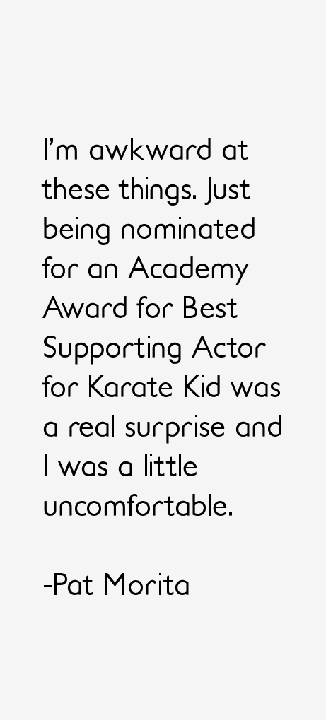 Noriyuki "Pat" Morita was an American film and television actor who was well known for playing the roles of Matsuo "Arnold" Takahashi on Happy Days and Kesuke Miyagi in the The Karate Kid movie series, for which he was nominated for the Academy Award for Best Supporting Actor in 1984... (wikipedia)