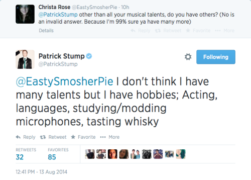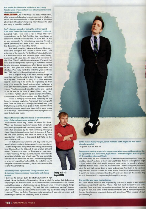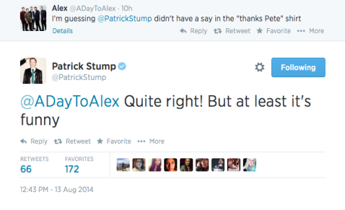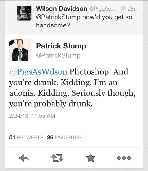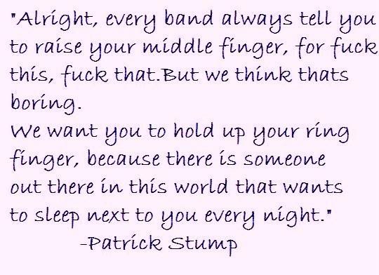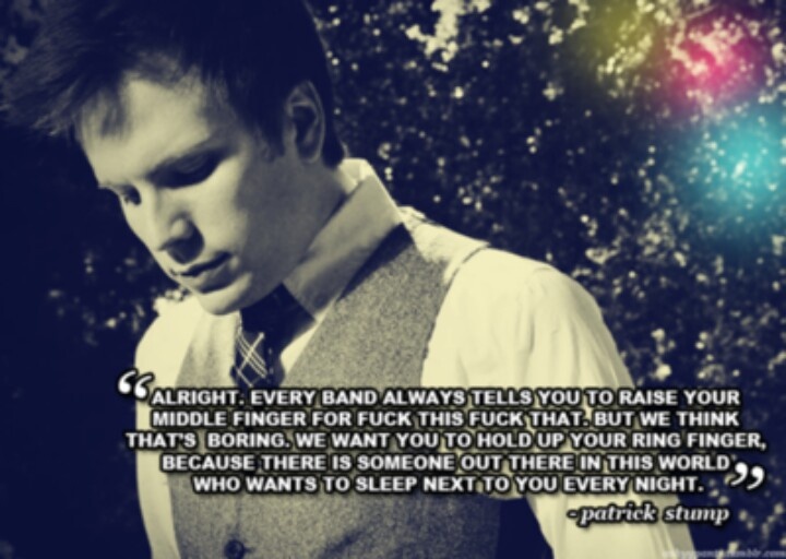 Patrick Martin Stumph, known professionally as Patrick Vaughn Stump, is an American singer, songwriter, musician, record producer, actor and music critic, best known as the lead vocalist, guitarist, pianist and composer of Fall Out Boy, an American rock band from Wilmette, Illinois. Stump embarked on a solo career as a side project from Fall Out Boy during its hiatus... (wikipedia)