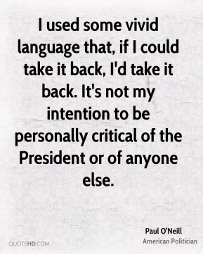I used some vivid language that, if I could take it back, I'd take it back. It's not my intention to be personally critical of the President or of anyone else.