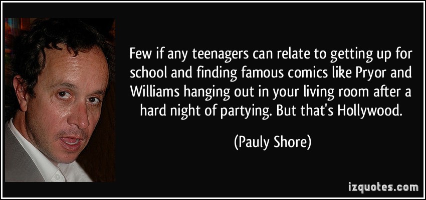 Paul Montgomery "Pauly" Shore is an American actor, comedian, director, writer and producer who starred in several comedy films in the 1990s and hosted a video show on MTV in the late 1980s and early 1990s. Shore is still performing stand-up comedy and toured in 2012... (wikipedia)