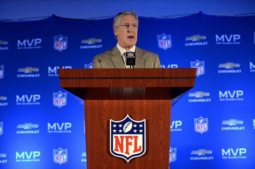 Peter Clay "Pete" Carroll is the head coach and executive vice president of the Seattle Seahawks of the National Football League. He is a former head coach of the New York Jets, New England Patriots, and the University of Southern California Trojans. Carroll is one of only three football coaches who have won both a Super Bowl and a college football national championship... (wikipedia)