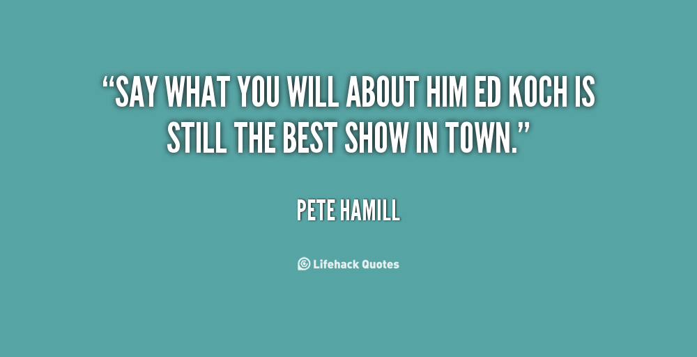 Pete Hamill is an American journalist, novelist, essayist, editor and educator. Widely traveled and having written on a broad range of topics, he is perhaps best known for his career as a New York City journalist, as "the author of columns that sought to capture the particular flavors of New York City's politics and sports and the particular pathos of its crime." Hamill was a columnist and editor for the New York Post and The New York Daily News... (wikipedia)