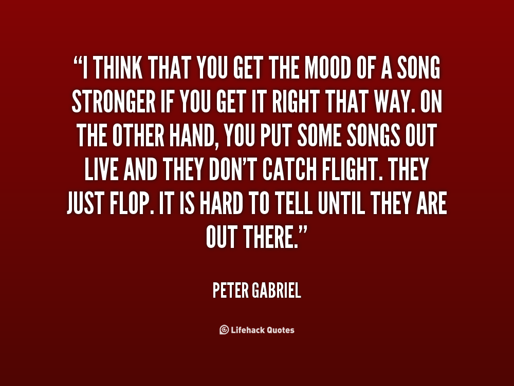 I think that you get the mood of a song stronger if you get it right that way. On the other hand, you put some songs out live and they don't catch flight. They just flop. It is hard to tell until they are out there.
