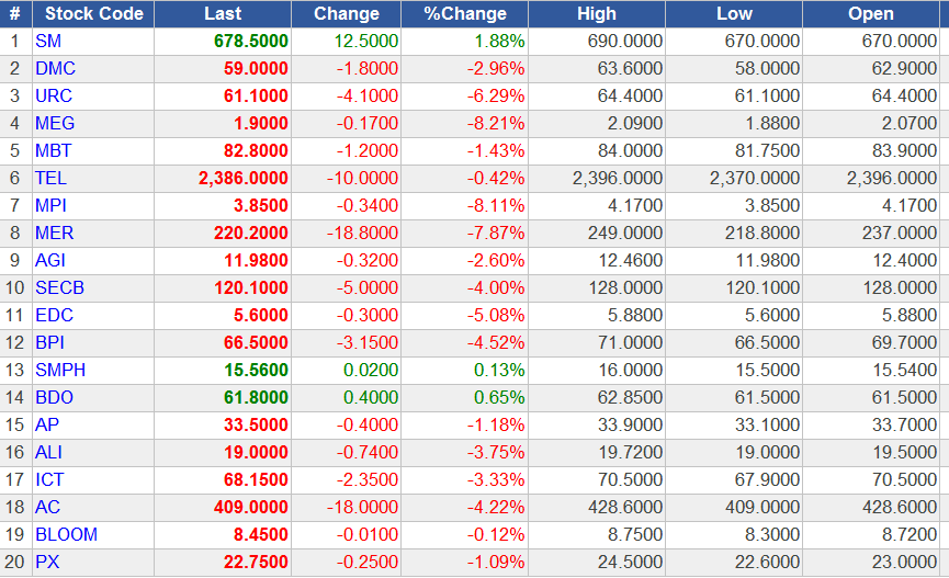 Ph Philippine Stock Exchange Quotes