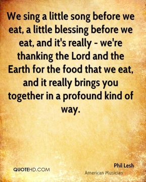 We sing a little song before we eat, a little blessing before we eat, and it's really - we're thanking the Lord and the Earth for the food that we eat, and it really brings you together in a profound kind of way.
