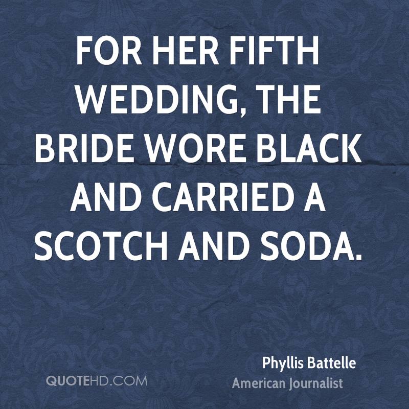 For her fifth wedding, the bride wore black and carried a scotch and soda.