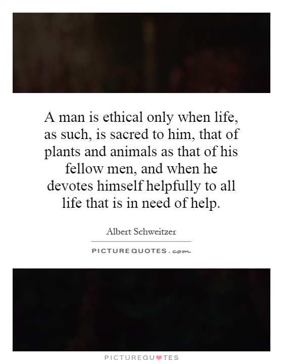 A man is ethical only when life, as such, is sacred to him, that of plants and animals as that of his fellow men, and when he devotes himself helpfully to all life that is in need of help.