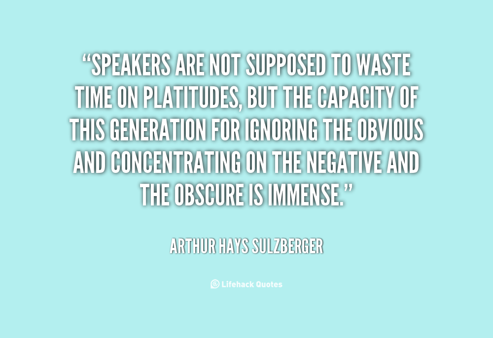 Speakers are not supposed to waste time on platitudes, but the capacity of this generation for ignoring the obvious and concentrating on the negative and the obscure is immense.